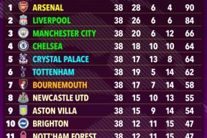 超算预测英超:枪手90分力压利物浦夺冠,切尔西第4曼联第15