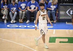 掘金球员穆雷上半场手感不佳,外线三分出手更是全部打铁。